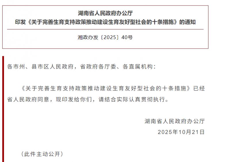 【导语】:为贯彻落实国务院办公厅《关于加快完善生育支持政策体系推动建设生育友好型社会的若干措施》(国办发〔2024〕48号)精神,加快构建“婚恋—生育—托育—养育—教育”一体化生育支持政策体系,促进人口高质量发展,结合我省实际,提出如下措施。
